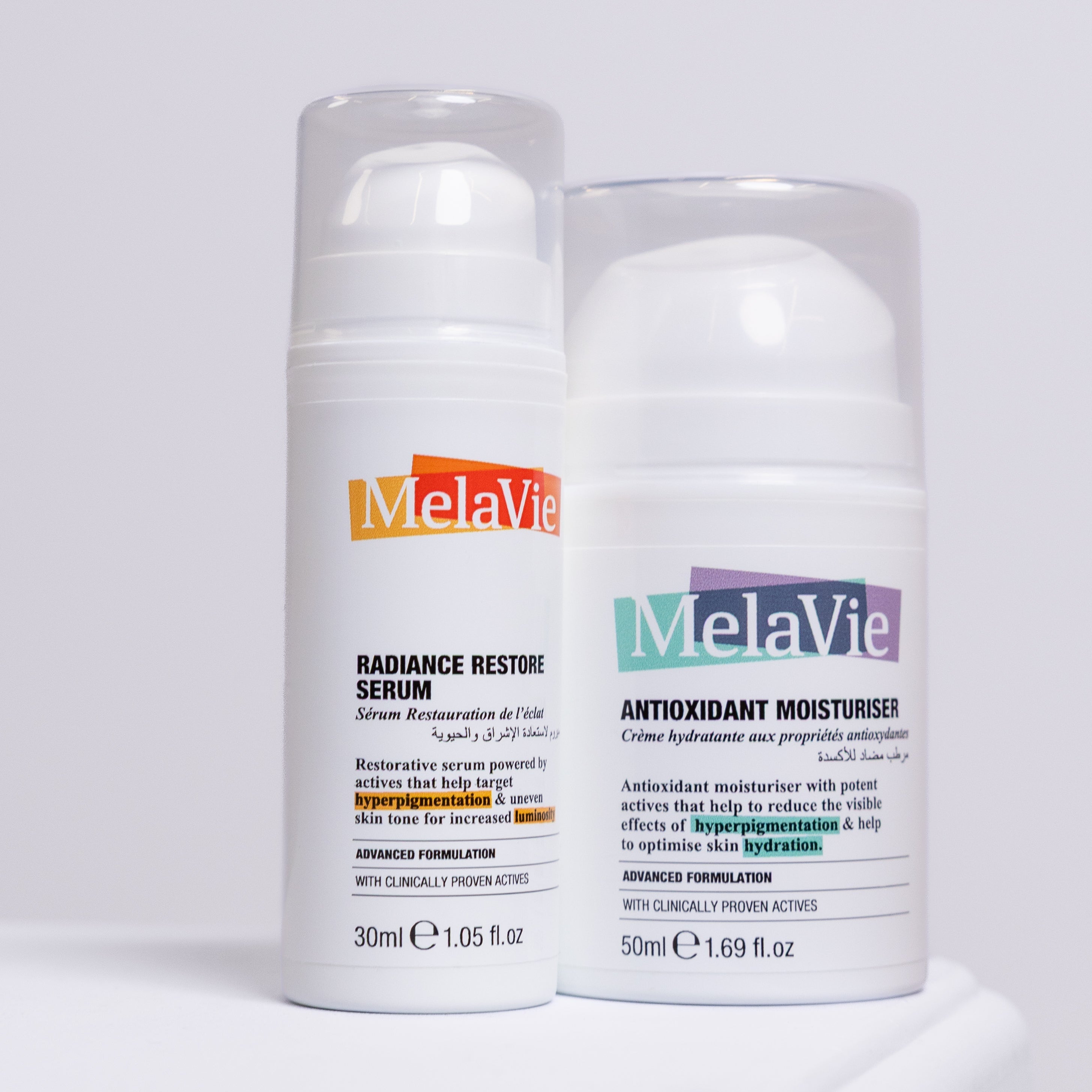 Bathroom shelf full of products that just don't deliver results? MelaVie combines seven clinically proven actives to target hyperpigmentation and support clearer, brighter skin in one effective formula. Make the change today and discover the power of our products.
